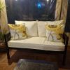 Hermoso juego de living malla completo en formato de 2 cuerpos, valor incluye fundas lona semi engomadas las cuales no encogen y se lavan con agua fría, cojines de asiento de 12 cm alta densidad y respaldos de picado con pluma.