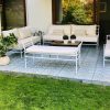 Juego de living de terraza estilo clásico en tubo de 7 octavo, asientos de espuma de 12cm de alta densidad respaldos gordos de picado con pluma.